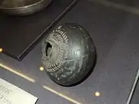 Kubyshka is an early East Slavic ceramic jar or pot with narrow hole, short or absent neck and wide, rounded body.[1] In the past the term kubyshka, a diminutive derivation from the word Куб (kub) in the generic meaning of "container",[2] had a broader meaning of various rounded containers, e.g. a barrel[1] or birch bark kubyshka.[3]