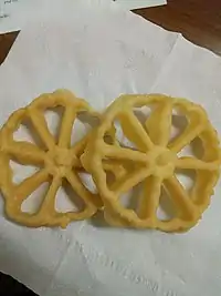 Kue kembang goyang or kuih loyang is an Indonesian cuisine and Malaysian cuisine flower-shaped traditional snack (kuih), associated with Betawi cuisine[1] and Malay cuisine.[2]