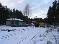 The Kushaverskoye peat railway's first line was constructed in 1967, in the area of Khvoyninsky District, Novgorod Oblast from the village Yubileyny to the swamp peat fields. The peat railway was built for hauling milling peat and workers and operates year-round. The total length of the Kushaverskoye peat narrow-gauge railway at the peak of its development exceeded 60 kilometres (37 mi), of which 16 kilometres (9.9 mi) is currently operational.[2]