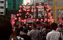 Kusuo Oshima (left) and a sign language interpreter (right) at a political rally in Ikebukuro, 2022