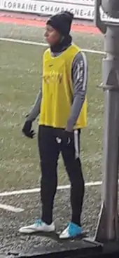 In October 2015, Mbappé was brought in by Leonardo Jardim to be a mainstay in Monaco's reserve team, but his level of skill and maturity prompted his promotion to the main squad after just three weeks.[35] He made his first team debut two months later, on 2 December 2015, in a 1–1 Ligue 1 home draw against Caen, replacing Fábio Coentrão after 88 minutes. Mbappé therefore became Monaco's youngest-ever first-team player, aged 16 years and 347 days, breaking the previous record set by Thierry Henry in 1994.[32][36]