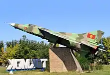 The military aviation in the Kyrgyz SSR dates back to December 1991.[4] Kyrgyzstan's air arm was inherited from the central Soviet Air Force training school (now the Military Institute of the Armed Forces of the Kyrgyz Republic). This presented the nation a fleet with several L-39s, some dismantled MiG-21s, Mi-8s and Mi-24s. However, only a few L-39s and some helicopters are capable of flight. All aircraft are reportedly based at Kant, alongside the Russian 999th Air Base.[5] Because of expense and military doctrine, Kyrgyzstan has not developed its air capability; a large number of the MiG-21 interceptors that it borrowed from Russia were returned in 1993, although a number of former Soviet air bases remain available. In 1996, about 100 decommissioned MiG-21s remained in Kyrgyzstan, along with ninety-six L-39 trainers and sixty-five helicopters. The air defence forces have received aid from Russia, which has sent military advisory units to establish a defence system. The Russians also help patrol Kyrgyz airspace as part of the Joint CIS Air Defence System Presently Kyrgyzstan has twenty-six SA-2 and SA-3 surface-to-air missiles in its air defence arsenal. In 2002, the Kyrgyz government allowed the United States to use Manas air base for support operations in the War on terror. This agreement lasted till June 2014.[6][7]