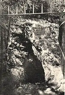The cave he used as a hermitage was opened in 1911 as Bathory Cave. A black marble slab commemorating his work was placed outside the cave, a small wooden house was built in front of the entrance, and in 1931 a marble altar was designed by Imre Havran. Today, only the broken pieces of the marble slab remain. The cave is closed and can only be visited with an escort.[5]