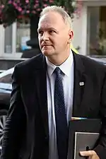 László Szabó (born 1965) is a Hungarian diplomat, physician, businessman and politician, who served as Hungarian Ambassador to the United States between 2017 and 2020. Prior to that, he served as CEO of the Teva Hungary Ltd. pharmaceutical manufacturing (2010–2014), then Deputy Minister of Foreign Affairs and Trade in the Third Orbán Government (2014–2017). He presented his credentials to U.S. President Donald Trump on 8 September 2017.[2]