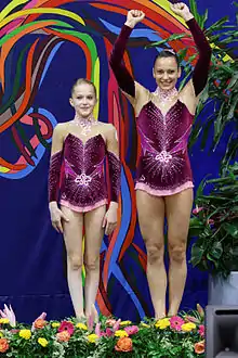 ![]() Claire Philouze and Léa Roussel (right) at the 2014 Acrobatic Gymnastics World Championships | |||||||||