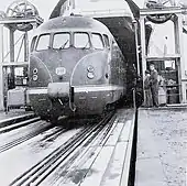 VT 125 as the "Kopenhagen-Express" leavong the train ferry "Theodor Heuss" on Großenbrode Quay on 6 December 1959