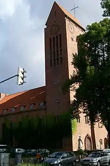 Johannes Prassek[7] was ordained to the Catholic priesthood in 1937. Father Prassek was assigned to Herz-Jesu Church together with Eduard Müller and Hermann Lange. He openly warned soldiers and youth groups against antisemitism, and protested the shooting of prisoners and Jews. Under German law at that time, such words were subject to the death penalty if reported to the Gestapo. Because of his sympathy for Polish workers who were forced laborers in the area, Father Prassek learned Polish so he could minister to them. Again, such ministry was illegal and could have led to his arrest, but the Gestapo never found out.