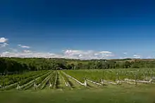 L'Acadie blanc is a white Canadian wine grape variety that is a hybrid crossing of Cascade and Seyve-Villard 14-287. The grape was created in 1953 by grape breeder Ollie A. Bradt in Niagara, Ontario at the Vineland Horticultural Research Station which is now the Vineland Research and Innovation Centre. Today the grape is widely planted in Nova Scotia with some plantings in Quebec and Ontario.[1] Some wine writers, including those at Appellation America, consider L'Acadie blanc as "Nova Scotia’s equivalent to Chardonnay".[2]