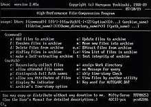 LHA or LZH is a freeware compression utility and associated file format. It was created in 1988 by Haruyasu Yoshizaki (吉崎栄泰, Yoshizaki Haruyasu), a doctor and originally named LHarc. A complete rewrite of LHarc, tentatively named LHx, was eventually released as LH. It was then renamed to LHA to avoid conflicting with the then-new MS-DOS 5.0 LH ("load high") command. The original LHA and its Windows port, LHA32, are no longer in development because Yoshizaki is busy at work.[1]