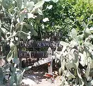 The Casa Alvarado is located on a portion of the 22,000-acre (8,900 ha) Rancho San Jose granted to Ygnacio Palomares and Ricardo Vejas in 1837. In 1840, Palomares invited his close friend, Ygnacio Alvarado, to live on the ranch and gave him a plot of land near Palomares' own home, La Casa Primera de Rancho San Jose.[2] The land was given to Alvarado with the stipulation that Alvarado would build a chapel in his home to be used for church services when padres visited from the Mission San Gabriel Arcángel.[2][3][4] The large 18-foot (5.5 m) by 42-foot (13 m) living room (or "sala") of the Casa Alvarado was used for church services for 45 years.[3][5][6][7] The Alvarado's adobe living room was also the site of the first public school classes in the Pomona Valley, starting in 1870 or 1871.[3][4][5][6][7][8]