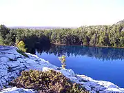 The La Cloche Silhouette Trail is a 78-kilometre (48 mi) backpacking loop across the white quartzite peaks of the La Cloche mountain range. The trail is situated in Killarney Provincial Park, Ontario, Canada. The trail is named for Group of Seven painter Franklin Carmichael's painting "La Cloche Silhouette."[1] Wildlife can be seen throughout the trail - black bears, moose, wolverines, mountain lions, lynx, fishers, snakes, porcupines, beavers, river otters, among other animals, can be encountered at various points along the way.