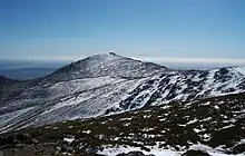 Originally, this peak was known as the "Montaña Maliciosa" (Malicious Mountain). This is due to the difficulty of its ascent, except for its northern slope. It has a fairly steep orography and there is a cumulative elevation gain of over 1100m. Later, the name was shortened and it is currently known as "La Maliciosa" or "Pico de la Maliciosa". This mountain is also known as "La Monja" because of its resemblance to a monk's headdress when covered with snow.[2] The name of this mountain dates back to the 14th century, and like the Maladeta in the Pyrenees, La Maliciosa in the Sierra de Guadarrama is the cursed one, whose rock, always desolate and naked, receives the attacks of wind, ice, water and sun.[3]