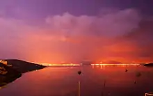 Panoramic view over Mar Menor and the length of 22 kilometers of La Manga del Mar Menor at the eastern horizon