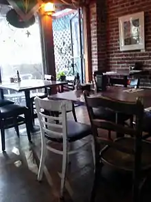 The original restaurant was added in the year 1976, and was later known as Café Valparaíso. It became part of the neighborhood's Gourmet Ghetto and is award-winning.[4] It is also known as Café de la Peña.[5] The cafe also sells endemic Chilean foodstuffs and novelties. Valpo's menu focuses heavily on Chilean empanadas.[5] The menu evolved over the years adding other Latin American cuisine such as food from Cuba, Mexico, Guatemala, and Peru.[5] The menu does however continue serving many Chilean dishes such as humitas.[5] In the mid 2010s the cafe left La Peña and relocated to Solano Avenue in nearby Albany folding in 2018 due to "personal reasons".[6]