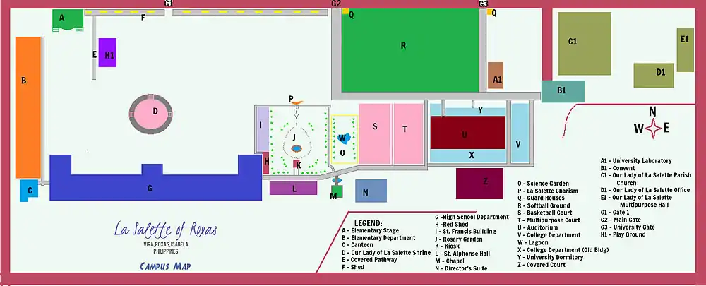 La Salette of Roxas campus map (including Our Lady of La Salette Parish Church)
