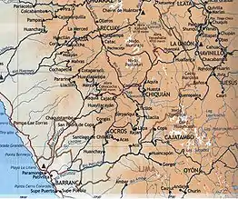 Road Map of La Union, from Paramonga, see Chaskitampu, Raquia, Cajacay, Qunuqucha, Chiquián, Aquia, Wansala and Wallanka.
