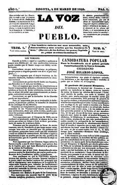 La Voz del Pueblo (English: People's Voice) was a liberal weekly newspaper published from Bogotá, Colombia in 1849.[1][2] The first issue of the newspaper was published on January 7, 1849.[1] It came out on Sundays.[3] The newspaper was identified with the opposition against the incumbent government.[1] The ninth, and last, issue of La Voz del Pueblo came out on March 4, 1849.[3]