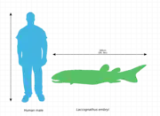 Comparison of an average adult human male, 170 cm (5.6 ft), with the approximate length of L. embryi, 1.8 m (6 ft).