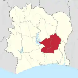 Lacs District was created in a 2011 administrative reorganisation of the subdivisions of Ivory Coast.[3] The territory of the district was composed by merging the former regions of N'Zi-Comoé and Lacs and removing the area of the Yamoussoukro Autonomous District.[1]