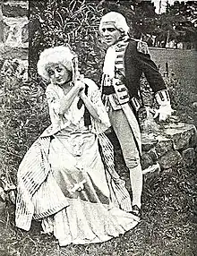 Most newspapers made only brief announcements about screenings of the Eclair release at their local theaters. In Florida in its January 27, 1914 edition, the St. Peterburg Daily Times in a short notice simply informs its readers about the film offerings that night at the "Airdome" cinema: "Barbara Tenent [sic] in Lady Babbie 3 reels, and 3 other strong reels, 6 reels in all; regular prices 5c and 10c."[17] The Arizona Republican in Phoenix was one of the newspapers that assessed the film. "It is seldom", writes the paper's anonymous reviewer in May 1914, "that any moving picture house is accorded the opportunity to present a photo-play equal to 'Lady Babbie,' the Eclair three-reel drama, featured today at the Regale theater".[18] The reviewer adds, "It is a romantic, colonial play, a costume production, and for richness, accuracy of settings and costuming and romantic atmosphere is superior to anything ever done by the Universal-Eclair company.[18][19]