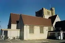 The site was large enough for not only for the church but for the vicarage and large halls; the importance of the grouping of the buildings means that they are collectively listed as Grade II on the English Heritage list of protected buildings.[3]