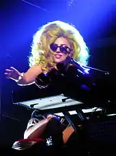 Gaga during her performance of "Just Dance"