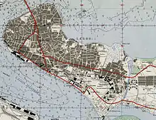 Lagos Island is connected to the mainland by three large bridges (the Carter Bridge, the Eko Bridge and the Third Mainland Bridge) which cross Lagos Lagoon to the district of Ebute Metta.[4][5][6][7][8][9][10][11] It is also linked to the neighboring island of Ikoyi and to Victoria Island. The Lagos harbor district of Apapa faces the western side of the island. Forming the main commercial district of Lagos, Lagos Island plays host to the main government buildings, shops and offices.[12][13][14] The Catholic and Anglican Cathedrals, as well as the Central Mosque, are located here.[15][16]