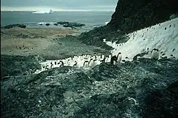 ![]() Adélie penguin colony on Lagotellerie Island | |