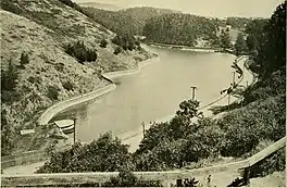 In 1865, the Spring Valley Water Works built a 13-mile (21 km) long redwood pipeline to transport drinking water from Pilarcitos Canyon to this reservoir. The 1906 San Francisco earthquake destroyed the pipeline. The lake and the surrounding land are now managed by the San Francisco Public Utilities Commission.[2]