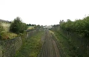 Former location of Laisterdyke railway station, looking east from Laisterdyke overbridge.
