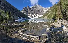 The Little Beehive can be ascended to the east of Lake Agnes.[4] At the top, there are excellent views of the Continental Divide. The Lake Agnes Tea House is situated on the eastern shores of the lake.[5]