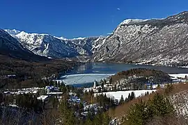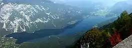 Lake Bohinj (Slovene: Bohinjsko jezero, German: Wocheiner See), covering 318 hectares (790 acres), is the largest permanent lake in Slovenia.[2][notes 1] It is located within the Bohinj Valley of the Julian Alps, in the northwestern Upper Carniola region, and part of Triglav National Park.