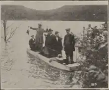 Lake Burton was constructed in a deep valley located along a 10-mile (16 km) section of the Tallulah River.[2] Its dam was closed on December 22, 1919, and was declared full August 18, 1920. The dam is a gravity concrete dam, with a height of 128 feet (39 m) and a span of 1,100 feet (340 m). The spillway is equipped with eight gates 22 feet (6.7 m) wide by 6.6 feet (2.0 m) high. The total capacity at an elevation of 1,866.6 feet (568.9 m) is 108,000 acre⋅ft (133,000,000 m3), of which 106,000 acre⋅ft (131,000,000 m3) is usable storage. The maximal depth is 105 feet. The generating capacity of the dam is 6,120 kilowatts (two units). Lake Burton is the highest Georgia Power lake in Georgia. About 70% of the homeowners lease their land from Georgia Power Company; the remainder is fee-simple, or privately owned.