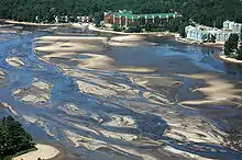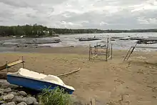 Much of the shoreline of Lake Delton has been developed with summer homes, year-round homes and condominiums. About 20 resorts surround the lake.[13] Prior to the 2008 washout, the lake had poor water quality, which is common to impoundments in southwest Wisconsin. Some of the water quality problems may have been due to construction site erosion, as well as rural nonpoint source pollution. The lake also had nuisance aquatic weed growth that has required chemical treatment.[14] The fishery of the Lake Delton was northern pike, walleye, largemouth bass, channel catfish and panfish.[15]