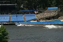 The lake was formed in 1927 to attract tourists to the area and became a popular attraction in the Wisconsin Dells tourist area following the economic recovery after the Great Depression.[5] Resorts and tourist attractions line its banks. The lake was the site of Tommy Bartlett's Thrill Show, which featured acrobatic water skiing.[6][7]