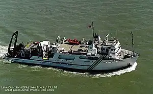 The Lake Guardian is a research vessel that serves on the Great Lakes.[4] She is owned by the EPA Great Lakes National Program Office (GLNPO), assisting in monitoring and reporting on the status and trends of the Great Lakes ecosystem. She has three onboard laboratories: a general purpose or "wet" laboratory, chemistry, and biology.