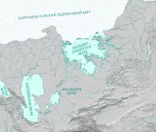 The West Siberian Glacial Lake, also known as West Siberian Lake (Russian: Западно-Сибирское море) or Mansiyskoe Lake (Russian: Мансийское озеро), was a periglacial lake formed when the Arctic Ocean outlets for each of the Ob and Yenisei rivers were blocked by the Barents-Kara Ice Sheet during the Weichselian Glaciation, approximately 80,000 years ago. It was situated on the West Siberian Plain, and at its maximum extent the lake's surface area was more than 750,000 km2 which is more than twice that of the present-day Caspian Sea.