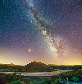 A scientist from Selçuk University in Konya stated in 2009 that the lake had nearly dried up. He stated that the reason behind this was the uncontrolled extraction of water for agricultural irrigation and overdrafting.[5] In 2012, it was reported that the lake's capacity had decreased by about 60% within the last twenty years and that there was a risk that it would dry out completely. In many sections of the lake, the water was becoming increasingly saline and crystallization was occurring.[6] A drought season in 2014 caused a lowering of the groundwater level which was responsible for the further drying out of the lake to an extent of almost 99%. The remaining water body was turned red by the large quantity of microorganisms present in the brackish water.[7] Nearly a hundred species of bird which were previously seen at the lake, had by 2015 moved elsewhere.[8]