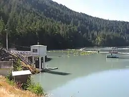 The lake was formed in 1927 with the completion of the dam and after the lowland forest that occupied the river bottom was clear-cut. With no fish passage facilities, the dam blocked passage of anadromous Pacific Salmon from the upper 50+ miles of the Elwha watershed located within Olympic National Park.