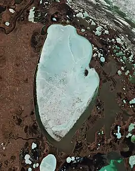 With an area of 323 km2 (125 sq mi), it is the largest coastal lagoon in the Yana-Indigirka Lowland[1] the lake freezes in the second half of September and melts in June.[2] The Bogdashkina river mouth lies to the west of the lake and Gusinaya Bay to the southeast.[3][4]