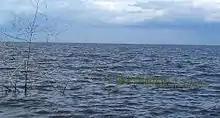 Okeechobee covers 730 square miles (1,900 km2) and is exceptionally shallow for a lake of its size, with an average depth of only 9 feet (2.7 metres). It is not only the largest lake in Florida or the largest lake in the southeast United States, but it is too large to see across.[4] The Kissimmee River, located directly north of Lake Okeechobee, is the lake's primary source.[5] The lake is divided between Glades, Okeechobee, Martin, Palm Beach and Hendry counties. All five counties meet at one point near the center of the lake.[6]