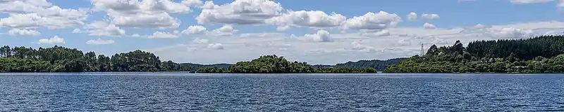 Lake Rotoiti is a lake in the Bay of Plenty region of New Zealand.[3] It is the northwesternmost in a chain of lakes formed within the Okataina Caldera. The lake is close to the northern shore of its more famous neighbour, Lake Rotorua, and is connected to it via the Ohau Channel. It drains to the Kaituna River, which flows into the Bay of Plenty near Maketu.