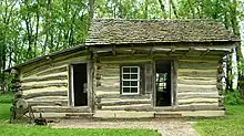 The restored and relocated 1859 Koch Cabin