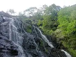 On the northern edge of the lake is a small hamlet called Rhiwargor where the rivers Afon Eiddew and Afon Naedroedd meet. Up the valley of Afon Eiddew is a waterfall known locally as Pistyll Rhyd-y-meincau, commonly known as Rhiwargor waterfall.