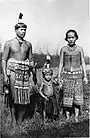 Left: Dayaks in their war dress. Right: A Dayak family.