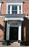 The windows of the three-storey building have moulded stone surrounds. The ground-floor windows have stone sills, arched tops and keystones with decorative motifs, including a lamb's head. The first-floor windows have stone cornices; the central window at this level, above the portico, has three lights.[1] The central bay has a portico with Tuscan columns flanking the main entrance, which is reached by a low flight of stone steps and features an arched head.[1][2]