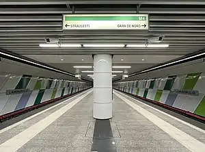 Laromet is a metro station in northern Bucharest, serving Bucharest Metro Line M4. Although it was supposed to be opened on 19 December 2016 as part of Stage III of M4 line, Metrorex decided to postpone the opening until the first half of 2017, due to safety issues.[1][2] The station was opened on 31 March 2017 as part of the extension of the line from Parc Bazilescu to Străulești.[3] It is located at the former tram terminal Laromet on line 20, which was closed because of the metro line's construction.