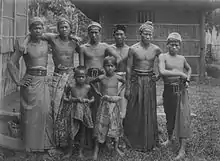 Originally the lineage of the Lampung people came from Sekala Brak kingdom.[7] However, in its customary sense the Lampung people developed and became two people group, namely the Saibatin Lampungs (coastal) and the Pepadun Lampungs (interior).[8] The customs of the Saibatin people are well known for its aristocracy,[8] while the customs of the Pepadun people which emerged later had democratic values developed in opposed to the aristocracy values held by the Saibatin people.[8]
