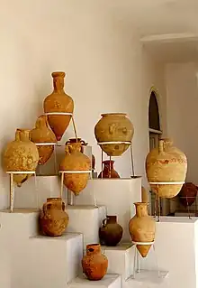 A third room was opened in 1994, in cooperation with Michigan University. Various types of amphorae discovered on site are displayed, and the exhibit explains how their study can provide data on trade flux in antiquity. Hydraulic systems and building techniques of the Roman period are also presented. The most precious pieces of the collection are several colorful Christian mosaics found in a nearby underground church (a basilica in a catacomb complex).[7][8]