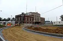 After decades of deferred maintenance, a complete station refurbishment was proposed in 1997, but it was not until June 2009 that a $12 million renovation of the station was initiated by Amtrak and Lancaster County.[31][32] Plans included a new HVAC system, improved ticketing and waiting area for intercity buses, an expanded parking lot, landscaping, a taxi stand, and "a complete rehabilitation of the station's interior and exterior".[31] However, the start of construction was delayed until October.[33] By September 2011, the renovations were estimated to cost $2 million over the planned amount and were a year behind schedule.[32][34] After being completed, it was discovered that the bus bays at the station could not accommodate the 45-foot-long (14 m) coaches used by Bieber Transportation Group.[35] The bays, which were being used as taxi stands instead, had been originally designed for the 40-foot (12 m) buses that had been used by the now-defunct Capital Trailways. The buses owned by Bieber, consequently, were unable to negotiate the turn in the parking lot leading to the bays. The curbs in the parking lots were eventually cut-back to allow more space for maneuvering.[35] Intercity bus service was run by Bieber Transportation Group from the station to York, Philadelphia, and New York City until it was discontinued on April 1, 2018.[36][37]